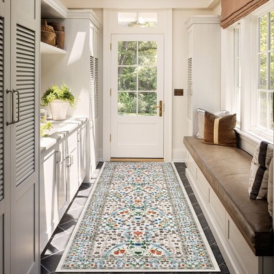 This vintage-inspired rug centers on intricate, soft floral patterns—lush blooms nestle among winding vines, while an elegant border defines its layered, classic charm. It comes in two hues: warm, gentle beige and calm, fresh green. Underfoot, it feels as soft as velvet, comfortable even for bare feet. The non-slip backing adheres tightly to the floor, eliminating the risk of shifting or slipping. It’s both hand-washable and machine-washable, making light work of spills or pet hair—ideal for homes where kids play and pets roam. It’s a decorative piece that blends artistic flair with everyday practicality.