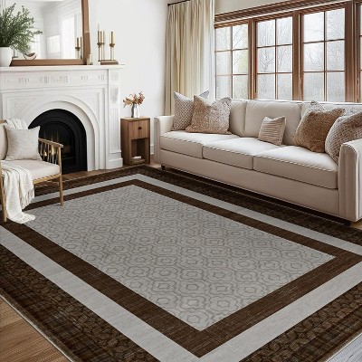 MontVoo Vintage Medallion Non-Slip Washable Rug Brown 9'x12'