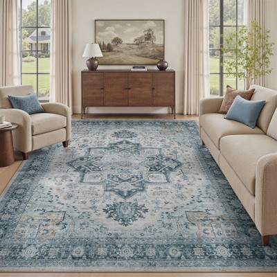 Add timeless charm and everyday comfort to your home with this vintage-inspired washable rug. Featuring intricate patterns in soothing blue tones with subtle accents, it brings a refined, elegant touch to any space. The soft, plush texture feels luxurious underfoot, while the non-slip backing keeps it securely in place. Fully washable and easy to maintain, this rug combines beauty, comfort, and practicality—perfect for creating a cozy yet sophisticated atmosphere in any room.