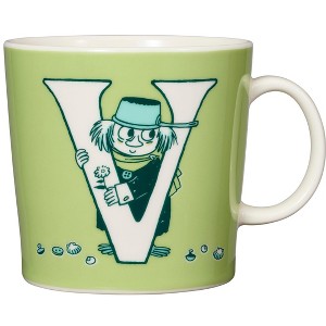 On the V mug, Fuddler falls in love with Mymble but with no luckshe has her eyes on an eccentric psychiatrist. Moomin by Arabia, mug 0.4 l, ABC V
