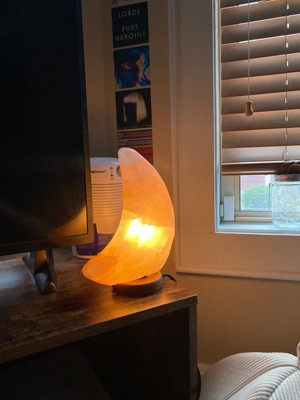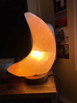 Q&A Himalayan Salt Moon Himalayan Salt Novelty Table Lamp : Crescent, Wood Base, Dimmer Switch