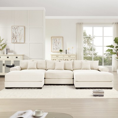 MOONMISS 106" U Shape 4 Seat Chenille U-Shaped Sleeper Sofa with Chaise Lounge, Ottoman & Pillows for Living Room