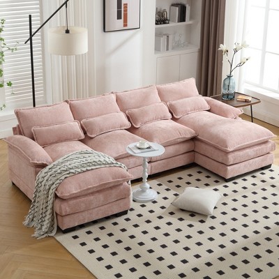 MOONMISS 110" oversized Chenille 4-Seat U-shaped combination sofa , high quality sponge filling, solid wood frame for Living Room,Navy