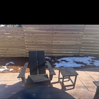 Not the first time I’ve ordered this line (Moore Polywood) from Target. I like the modern Adirondack style and the two wider back planks versus 3 or more in some designs. We also have the loveseat versions in black and have noticed a very slight sag across the span but nothing that most people notice who don’t spend time staring at the front. The chairs (grey in color) do not show this effect. I do feel they are more comfortable with cushions to raise up the seat height a bit but even without, they are not near as low to the ground as many Adirondack designs that leave you with an ungraceful dismount. The first two spend all their time in the sun where the new ones will join them. I cannot say I have noticed any fade in the ones that are approximately 5 years older.