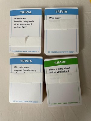 I really enjoyed playing this game with my family. It’s easy to understand and fun for everyone. The mix of trivia, challenges, and story-sharing cards made our game night full of laughs and surprising stories. It’s a great way to learn new things about each other and just have a good time together. Perfect for small groups or family gatherings. Definitely recommend it if you want something lighthearted and meaningful!