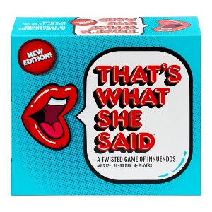 - "That's What She Said - Second Edition" is "An Outrageous Party In A Box" with 400 ALL NEW Innuendo-Filled Phrases for hours of hilarious and unpredictable fun.