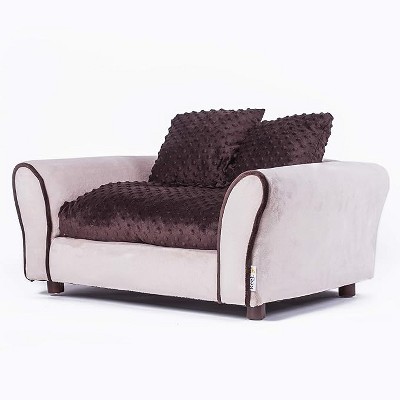 - Elegant and Stylish Accents: Upholstered in soft Minky fabric with contrasting piping for a touch of elegance, this dog sofa includes a removable, machine washable cushion cover; Complete with two accent pillows, this dog couch it's designed to complement your home decor while offering comfort for your pet