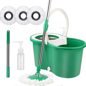 - SPIN MOP BUCKET WITH WRINGER SET: This mop bucket is equipped with an agitator to easily remove stains and water from your mop. Your hands can wash and dry the mop without touching the dirty water, very convenient.