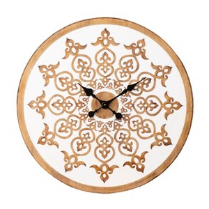 Check functional decor off your list when you bring home this decorative wall clock. A rustic, oversized design works beautifully above an entryway console or in your home office, while the detailed clock face gives your living space unique flair. Whether you are checking the time as you walk out the door or counting down to the weekend, this round wall clock gives you practical style where you need it most.