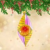 Add vintage flair and dazzling charm to your holiday decorating with the Golden Stripe Reflector ornament from Morawski. This hand-blown treasure from Poland features a classic reflector design with radiant pink, gold, and blue glitter stripes that catch the light beautifully. Each piece is uniquely shaped through a traditional free-blown glass method, giving it timeless character and artisan appeal. Whether you're trimming the tree or curating a nostalgic holiday display, this ornament adds a joyful pop of sparkle and color. Measures Approximately 8 In H X 3.25 In W X 3.25 In D (HxWxD). Includes 1 Reflector Ornament.