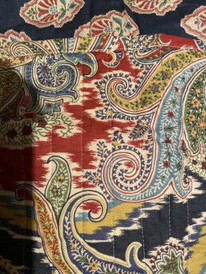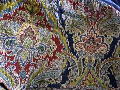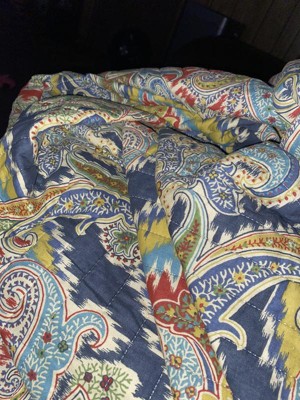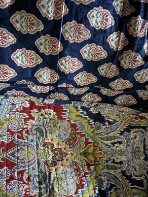 [This review was collected as part of a promotion.] I love this quilt set! It’s so beautiful. The colors are so rich and vibrant, reds, blues, gold, yellow, and green. The paisley print is beautiful as well. The print is red background on one side and blue on the other. The red print is an all over design, the blue print is a repeating pattern. The fabric feels nice. It’s definitely a nicer fabric and is smooth and soft. The fabric is stitched in rows about 2 inches apart to prevent bunching. This set comes with a quilt and 2 matching pillowcases.