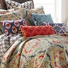 [This review was collected as part of a promotion.] I love this quilt set! It’s so beautiful. The colors are so rich and vibrant, reds, blues, gold, yellow, and green. The paisley print is beautiful as well. The print is red background on one side and blue on the other. The red print is an all over design, the blue print is a repeating pattern. The fabric feels nice. It’s definitely a nicer fabric and is smooth and soft. The fabric is stitched in rows about 2 inches apart to prevent bunching. This set comes with a quilt and 2 matching pillowcases.