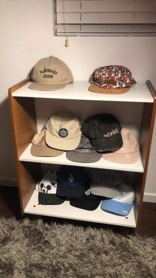 A: You should be able to fit fabric cube bins on the shelves. Product dims are as follows: 22"w x 13"d x 30"h. The height per each shelf is a little under 15"