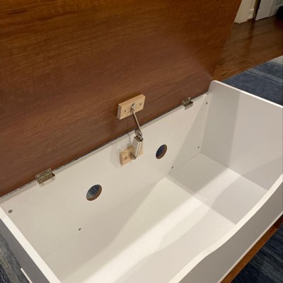 [This review was collected as part of a promotion.] I really enjoyed putting this toy chest together with my 10 year old son. One suggestion for the directions is to have step 9 divided into an additional step 10. I found it easiest to attach hardware to the lid prior to attaching to the body of the toy chest.The diagram of the soft close hinge can look confusing, but I've added a photo for reference. Structure is sturdy and stylish. Lid is super easy to lift, and closes softly. I like the storage underneath. Nice for folded blankets, or games and puzzles.