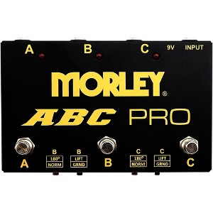 With the Morley ABC Pro switcher/combiner, can route one instrument signal to three output sources, which lets select between either output independently or combined. It features isolated channels, so there's no crosstalk or bleed-through. The ABC Pro uses Ebtech custom isolation transformers to prevent ground loops. And the silent switching means there's no “pops” when switching. Polarity reverse and ground lift switches provide quiet operation. Lastly, it features LED indication, cold rolled steel housing, powers from 9V battery or adapter.
