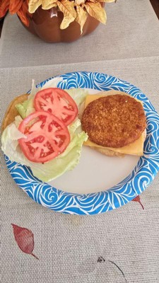 [This review was collected as part of a promotion.] Holy Frick, these are so good! They’re perfectly seasoned, super crunchy, and very filling. I also appreciate that the breading stays in tact, whether you’re frying them or baking them. They fit perfectly on the standard hamburger bun as well.