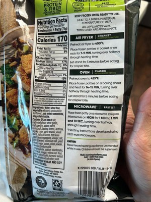 [This review was collected as part of a promotion.] vegan chicken patties with a spicy, buffalo flavor with a crispy, crunchy breading outside and tender inside! Great meal option to share with the whole family. 9g of protein per serving, these patties are filling and versatile, perfect for a satisfying sandwich, wrap, or even a salad topper. Stock this convenient resealable bag in the freezer for an exciting anytime meal option you can easily prepare in an oven, air fryer or microwave
