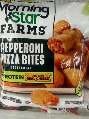 - Includes 1, 9.5oz resealable bag of frozen MorningStar Farms Pepperoni vegetarian pizza bites; Store in the freezer to enjoy anytime