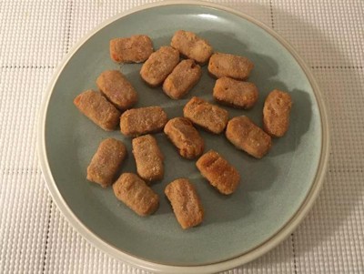 [This review was collected as part of a promotion.] For a vegan product, this does not disappoint! The texture is crispy and crunchy. Easy to cook. Resealable packaging. Delicious bites that are quick and easy to make.