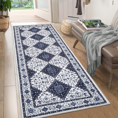 Moroccan Geometric Rug Modern Non-Slip Low Pile Rug Washable Boho Rug, 2'x6' Brown