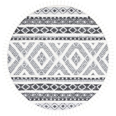 Moroccan Tassel Shag MTS650 Power Loomed Area Rug - Black/Ivory - 6'7" round - Safavieh.