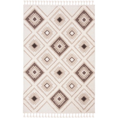 Moroccan Tassel Shag MTS688 Non-Shedding Power Loomed Indoor Accent Rug - Ivory/Brown - 3'x5' - Safavieh