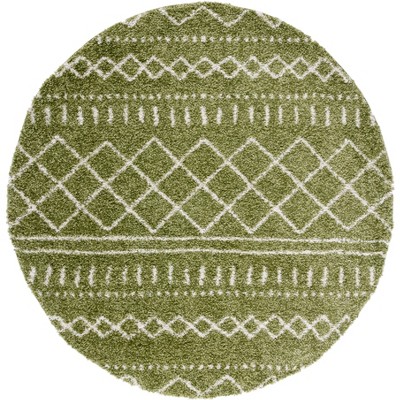 Moroccan Tassel Shag MTS688 Non-Shedding Power Loomed Indoor Area Rug - Green/Ivory - 6'7" Round - Safavieh