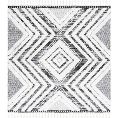 Moroccan Tassel Shag MTS688 Non-Shedding Power Loomed Indoor Area Rug - Ivory/Grey - 6'7"x6'7" - Safavieh