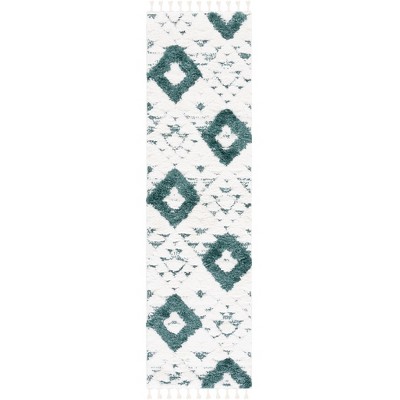 Moroccan Tassel Shag MTS688 Non-Shedding Power Loomed Indoor Area Rug - Green/Ivory - 8'x8' - Safavieh