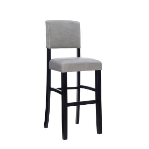 Introducing the Morocco 30" Padded Back & Seat Barstool by Linon – a perfect blend of classic charm and modern comfort. Crafted with a solid rubber wood frame in a rich dark black finish, these barstools are not just pieces of furniture; they are statements of timeless design. The warm dove gray faux leather upholstery adds a touch of elegance while ensuring easy maintenance – simply wipe clean with a damp cloth. Whether you're enjoying drinks at a bar or settling in for a casual meal at your kitchen counter, the Morocco barstool promises extra comfort with its thick foam padded seat and backrest, making it an essential addition to your home.