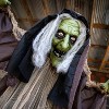 - This standing witch decoration moves its arms and its eyes lights up when activated.