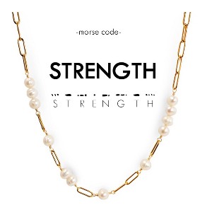STRENGTH.Your Power Source.This necklace spells STRENGTH in Morse Code using a sleek mix of freshwater pearls and a gold paperclip chain. A quiet but powerful reminder that resilience often whispers, Keep going. Part of both our Harmony Collection and Morse Code Collection, this piece balances softness and structure, purpose and beauty. Crafted with waterproof, sweatproof, and tarnish-resistant gold plating over stainless steel for everyday wear.