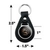 - QUALITY MATERIAL: Our durable round keychain is crafted from leather with a glossy resin-topped emblem featured design shown on one side. Approximately 1.5" (3.8cm) x 2.5" (6.4cm) in overall size, emblem is 1" (2.5cm)..