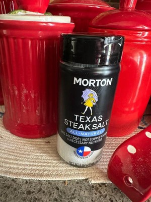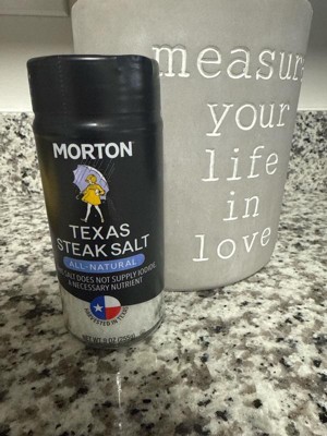 [This review was collected as part of a promotion.] Morton Texas Steak Salt has a coarse texture and great taste. The glass packaging is simple and sturdy. It’s great for all foods so it’s very versatile. The packaging does not have a sprinkler top so be cautious when dispensing the salt.