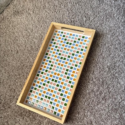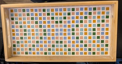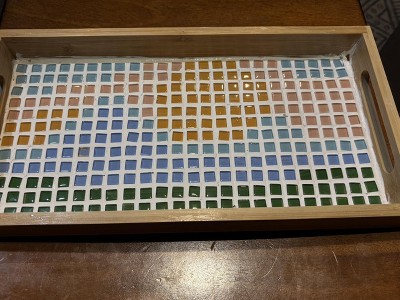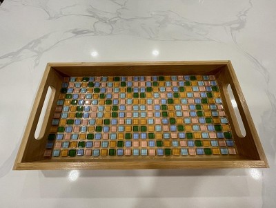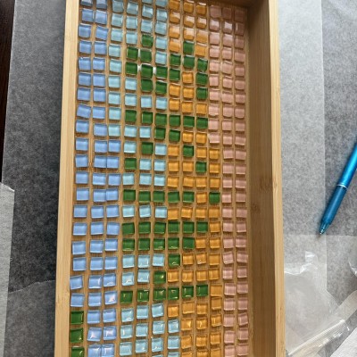 A: The tray is made from bamboo, providing a sturdy base for your mosaic designs.