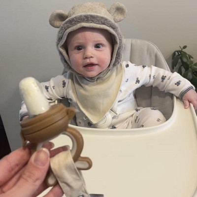 I have been gifting the Moss & Fawn Silicone Feeder to my friends. They absolutely LOVE it. It comes with three different nipple sizes and they have been reporting back that their babies love teething on it.