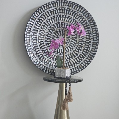 Mother of Pearl Plate Handmade Mosaic Wall Decor Silver - Olivia & May: Coastal Style Wood Composite Artwork
