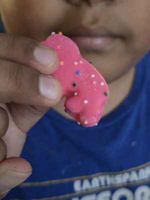 [This review was collected as part of a promotion.] The cookies are fun and playful — small, animal-shaped shortbreads covered in pink or white frosting and sprinkled with rainbow bits.  The sweetness and crunch make them a fun treat, especially if you’re craving something light and sugary for a snack or lunchbox
