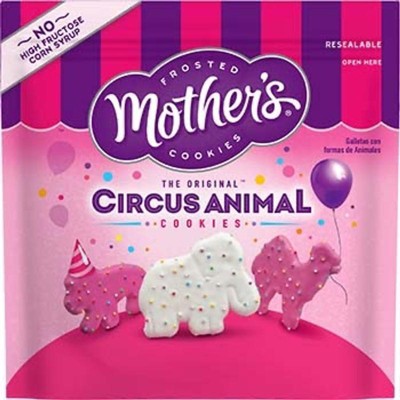 Roar with delight at each crunchy bite! Stop and Taste the Frosting with Mother's Original Circus Animal Cookies and unleash a playful parade of animal-shaped treats like elephants, camels, lions, rhinos, bison, cows, and pigs. Every bite-size shortbread cookie is fully frosted pink and white and topped with rainbow sprinkles. The iconic shapes inspire creativity and provide a fun-filled treat experience. Baked with care, it’s no wonder these classic frosted animal cookies have been loved for generations. The convenient resealable bag keeps sweet cookies fresh, ready for everyday treats, lunch boxes or to use as a delicious dessert topping. Get a taste and let snack time run wild.
