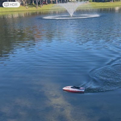 The 20 inch dual propellor boat comes equipped with a USB charging cable for easy charging accessibility. Connect up to six boats with 2.4 GHz Technology and race interference free. All batteries required included