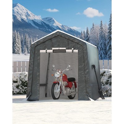 1. Heavy-Duty Weather Resistance for All-Season ProtectionThis motorcycle shed is crafted with robust, weather-resistant materials to shield your bike from the elements year-round. Whether facing heavy rain, intense sunlight, or strong winds, it forms a reliable barrier that prevents water damage, UV fading, and rust, keeping your motorcycle in pristine condition. The durable construction ensures long-term protection, making it a trustworthy solution for outdoor storage in any climate.2. Compact 6x6 FT Design for Targeted StorageWith a space-efficient 6x6 FT footprint, this shed is perfectly sized to house one motorcycle, offering a secure and organized storage solution without taking up excess space in your yard, garage, or driveway. Its tailored dimensions ensure a snug fit for most standard motorcycles, keeping your bike protected while maximizing the use of your outdoor area. It¡¯s an ideal choice for those seeking a dedicated spot to store their motorcycle without clutter.3. Ventilated Design to Prevent Moisture BuildupEquipped with a roll-up zipper door and windows, this shed prioritizes airflow to combat moisture and condensation. The ventilated features allow fresh air to circulate freely, reducing the risk of mold, mildew, or rust that can damage your motorcycle¡¯s components. The roll-up door adds convenience¡ªeasily access your bike while maintaining ventilation, and close it securely when not in use to keep out dust and debris.4. Effortless Assembly with Basic ToolsSetting up this motorcycle shed is quick and straightforward, thanks to the included hardware and simple instructions. You won¡¯t need specialized tools or advanced DIY skills; the design is user-friendly, allowing most users to complete assembly in a short time. Spend less time on setup and more time enjoying the peace of mind that comes with knowing your motorcycle is safely stored.5. Sturdy Frame & Waterproof Cover for LongevityThe shed features a robust canopy frame that provides stable support, ensuring the structure remains upright even in windy conditions. Paired with a waterproof cover, it creates a durable shelter that stands up to regular use and harsh weather. This combination of a strong frame and weatherproof cover guarantees long-lasting performance, offering reliable protection for your motorcycle for years to come.