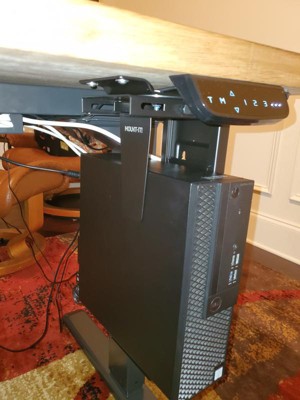 Great product and very easy to install. Gives a great look for storing pc under the desk while freeing up space on your desk. You also have the option to mount on the wall. I would have rated this 5 stars but the bottom bracket that the pc rest on was welded at an off angle so the pc does not sit flush on the bottom plate.
