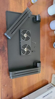 This laptop tray is ideal for school, business, work, and more. The height adjustable design can turn your desk into a sit-stand design for better blood pressure and circulation. Positioning your laptop at an angle can improve your workplace ergonomics and reduce neck, wrist, back, and eye strain. The vented tray helps keep your laptop operating at more optimal temperatures which can increase your device's longevity. Compact, weighs only 3.5 lbs making it easy to travel with.All necessary hardware and instructions included.