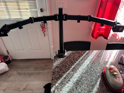 [This review was collected as part of a promotion.] Dual monitor desk mount is a great additional to the working station or computer station. It took about 15 mins to install and the process was simple enough that anyone can do it. You can move it side to side to adjust the monitors and it’s very stable. However, the only reason I didn’t give it 5 stars because it doesn’t allow us to adjust up and down. We have to unscrew move it up/down, then screw it back. Our kids at different ages use the computer station and it doesn’t allow them to adjust the monitors at their eye levels. Hence, we have to buy a chair that allows them to adjust the chair up/down. Other than that, I think this is a great product. We are all happy to have it.