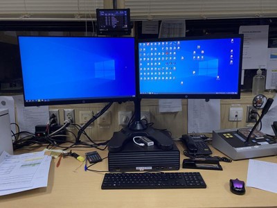 This is so great that. I wish that I had bough the one for the four monitor's instead but this is what I use at work two and three. Again I bought this one for my self to use home. Great to sit and stand to allow circulation.