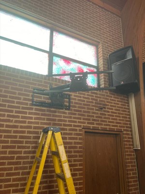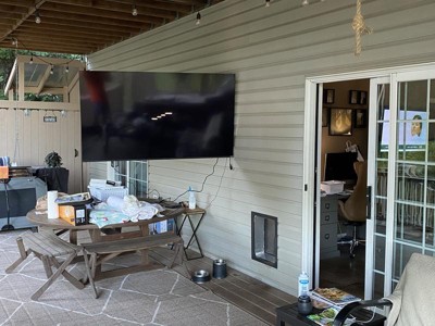 This thing is a beast! Mounted a 75 “ TV outside under deck. Works great. Takes 2 people to hold and tighten the lag bolts.