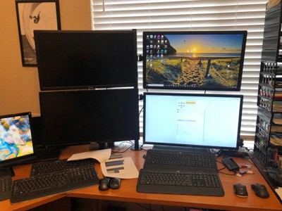 Very well built and come with more than enough hardware for any and all monitors. The only gripe that I have is that each monitor doesn’t move independently. What I mean by that is the top two and bottom two are vertically dependent. If you wanna move the bottom right up, the bottom left will have to move up with it.