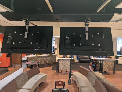 Bought to hang overhead scoring monitors in a bowling center. Sharp PN-B401 displays (39" diagonal, 32 lbs.). Had to fabricate adapter plates (plywood) since the commercial displays had an unusual bolt pattern (400 mm x 200 mm with cooling vents in the center area). Worked well and pleased with the mounts overall.