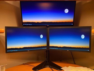 Amazing solid dual monitor stand. The base has enough weight to keep both monitors levelled up, and assembly was ever so simple. The cable management is a great addition, as it keeps everything nice and clean
