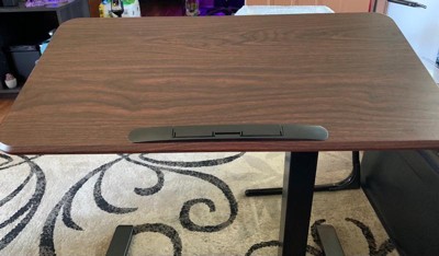 Mount-It! Height Adjustable Overbed Desk and Table with Tilting Tabletop | Overbed Medical Table with Wheels | Dark Walnut